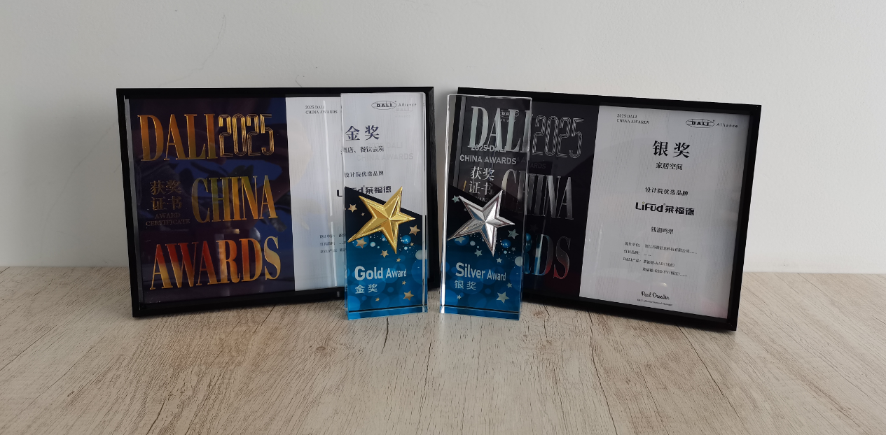 DALI中国奖旨在表彰在中国智能照明领域内,DALI技术所展现出的卓越解决方案与创新应用,展示 DALI 技术应用的实力。在本次评选中,莱福德两大应用案例在众多项目中脱颖而出,分别荣获酒店、餐饮会所金奖及家居空间银奖!